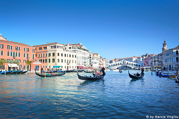 • Grand Canal cea mai mare artera principala maritima care serpuieste intr-un mod fermecator prin centrul Venetiei printre palate splendide cu mii de reflexe si culori. Va puteti plimba cu gondola sau cu vaporetto insa trebuie sa tineti cont ca o plimbare cu gondola costa intre 60 si 100 euro iar un bilet pentru vaporas este 10 euro si are o valabilitate de 24 ore.