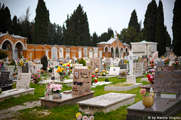 San Michele cel mai mare cimitir insular despre care se spune ca este capatul de drum al oricarui venetian este de o frumusete greu de imaginat, va recomand sa-l vizitati dar nu ca pe un ultim drum. Cimitirul a fost proiectat de celebrul arhitect Giovanni Antonio Selva in secolul al XIX-lea el continuand sa fie folosit chiar si in ziua de azi. In cimitirul San Michele se odihnesc sufletele a numeroase personalitati, printre care compozitorul rus Igor Stravinsky, decedat in 1971, laureatul Premiului Nobel pentru Literatura din 1987, Joseph Brodsky, mort in 1996, si poetul modernist american, Ezra Pound, plecat in lumea celor drepti in 1972. La intrarea in cimitir, vizitatorii sunt rugati sa respecte un set de reguli, pentru a nu tulbura linistea celor morti, tinuta trebuie sa fie una decenta, comportamentul la fel iar fotografii sunt rugati sa nu-si foloseasca aparatele in timpul vizitei pe insula, eu unul nu m-am putut abtine si am tras cateva cadre, Doamne iarta-ma!