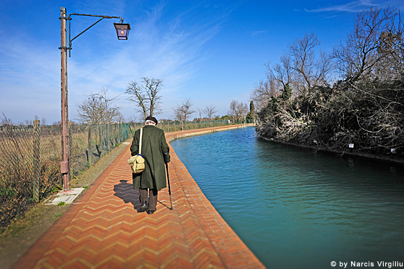 foarte interesanta poza cu batranelul pe alee,oare lumina lampii ajunge pana la capatul aleii? ca nu e decat un stalp cel putin in fata lui pe toata lungimea aleii si becul e inca aprins se pare.Ca sa nu mai vorbim de pavajul impecabil.